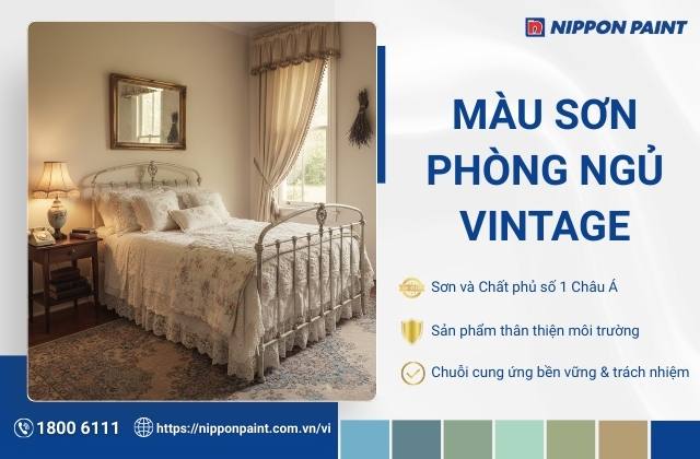 Màu sơn phòng ngủ Vintage đang trở lại mạnh mẽ trong xu hướng thiết kế nội thất, nhờ khả năng tạo cảm giác ấm áp, thư giãn và mang chiều sâu thẩm mỹ cho không gian nghỉ ngơi. Những gam màu quen thuộc như nâu vintage, kem, xanh hải quân, xám ấm hay xanh rêu được ưa chuộng vì dễ ứng dụng, phù hợp nhiều diện tích phòng ngủ khác nhau. Trong bài viết này, Nippon Paint sẽ gợi ý 8 màu sơn phòng ngủ Vintage đang được quan tâm, giúp bạn lựa chọn bảng màu hài hòa với phong cách sống và nhu cầu sử dụng thực tế.