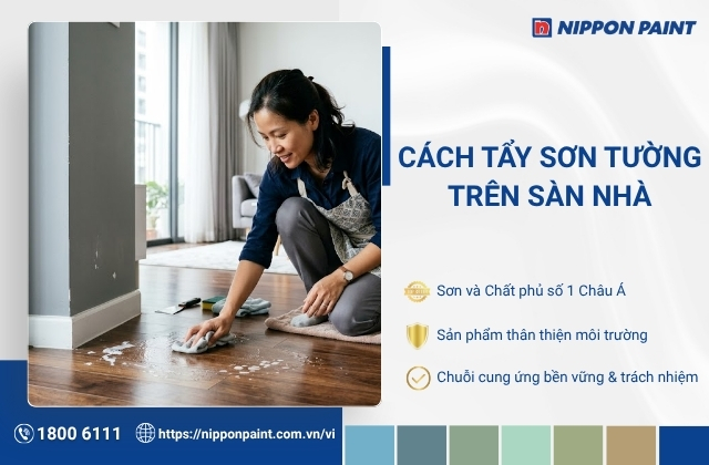 Cách tẩy sơn tường trên sàn nhà là vấn đề nhiều gia đình gặp phải sau khi thi công, đặc biệt khi sơn bị nhỏ giọt hoặc bắn xuống nền gây mất thẩm mỹ và khó vệ sinh. Nếu không xử lý đúng cách, vết sơn có thể bám chặt, ảnh hưởng đến bề mặt sàn và tốn nhiều công sức làm sạch. Trong bài viết này, Nippon Paint sẽ tổng hợp 13+ phương pháp xử lý từ đơn giản đến chuyên sâu, giúp bạn lựa chọn cách phù hợp với từng loại sàn và tình trạng vết sơn.