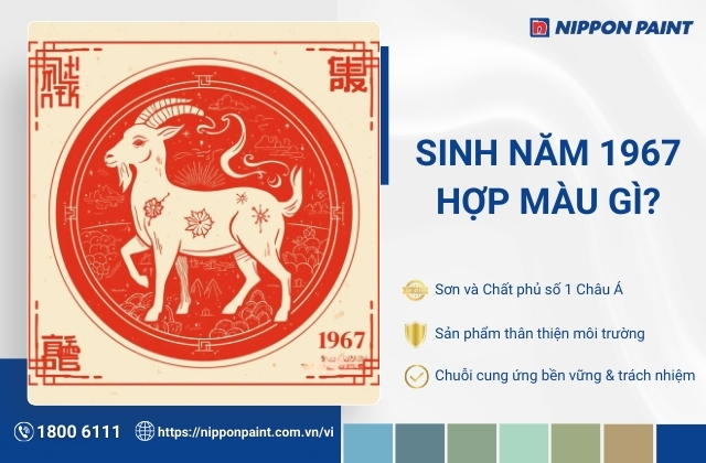 Để lựa chọn màu sơn nhà chính hãng, bảng màu đa dạng, chất lượng bền bỉ theo thời gian, gia chủ sinh năm 1967 có thể tham khảo các dòng sơn chính hãng từ Nippon Paint. Hãng sở hữu bảng màu phong phú, chất lượng bền đẹp theo thời gian.