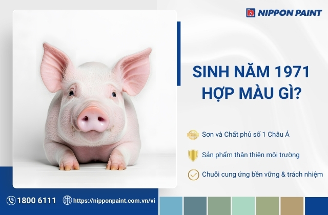 Để được tư vấn chi tiết hơn về các mã màu hợp phong thủy, hãy đến Đại lý Sơn Nippon gần nhất hoặc liên hệ hotline 1800 6111 để được các chuyên gia hỗ trợ lựa chọn giải pháp sơn phù hợp nhất với gia chủ sinh năm 1971.