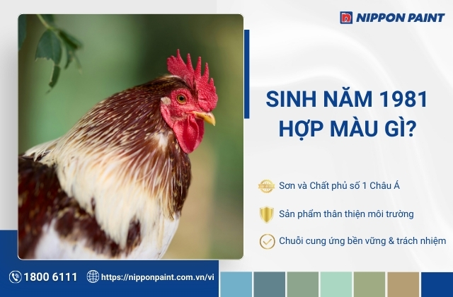 Để chọn đúng màu sơn nhà chính hãng, đa dạng bảng màu và đảm bảo chất lượng bền đẹp theo thời gian, gia chủ sinh năm 1981 nên ưu tiên hệ thống phân phối của Nippon Paint. Bạn có thể đến đại lý Nippon Paint gần nhất để trực tiếp trải nghiệm màu sắc và nhận tư vấn phối màu theo phong thủy tuổi Tân Dậu. Ngoài ra, hãy liên hệ hotline 1800 6111 để được đội ngũ chuyên gia hỗ trợ chi tiết, giúp lựa chọn giải pháp sơn phù hợp nhất cho không gian sống.