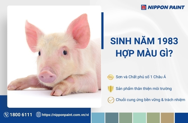 Để lựa chọn màu sơn nhà nội thất chính hãng, bảng màu đa dạng và bền đẹp theo thời gian, gia chủ Quý Hợi 1983 nên ưu tiên các dòng sơn chất lượng cao, phù hợp phong thủy và không gian sống. Bạn có thể đến đại lý Nippon Paint gần nhất hoặc liên hệ hotline 1800 6111 để được tư vấn chi tiết, giúp chọn đúng màu sơn hợp tuổi, bền màu và tối ưu thẩm mỹ cho ngôi nhà.