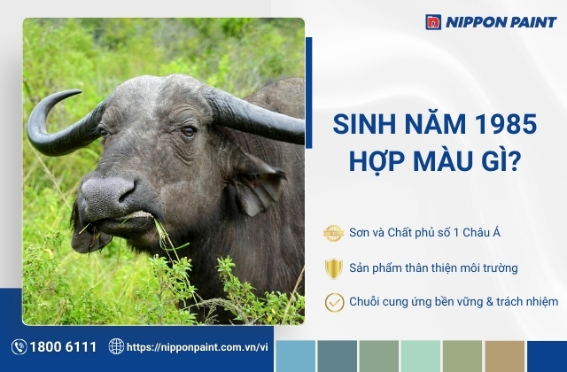 Để sở hữu không gian sống hoàn mỹ với màu sơn bền bỉ theo thời gian, gia chủ nên ưu tiên lựa chọn các dòng sơn chính hãng có bảng màu đa dạng và chất lượng tốt. Sử dụng sản phẩm cao cấp sẽ giúp bảo vệ công trình và đem lại màu sắc phong thủy của tuổi 1985 luôn chuẩn xác và rạng rỡ. Hãy đến đại lý của Nippon Paint gần nhất hoặc liên hệ hotline 1800 6111 để được tư vấn chi tiết các phương án phối màu phù hợp nhất cho những người sinh năm 1985.