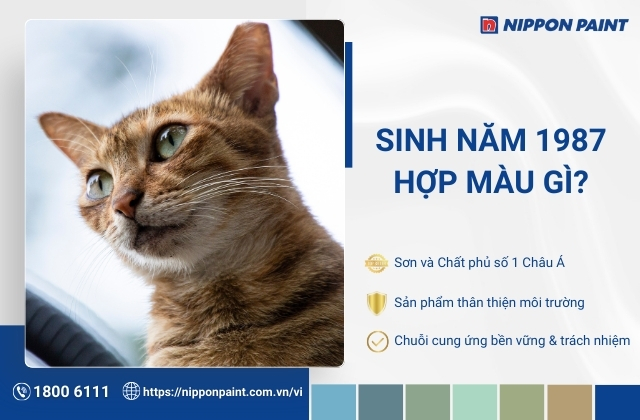 Để ngôi nhà hài hòa cả về thẩm mỹ lẫn phong thủy, gia chủ sinh năm 1987 nên ưu tiên sử dụng các dòng sơn chính hãng, có độ bền cao và bảng màu đa dạng. Sơn chất lượng tốt giúp không gian giữ được vẻ đẹp lâu dài và thuận tiện trong việc lựa chọn màu sắc phù hợp với bản mệnh hợp phong thủy.