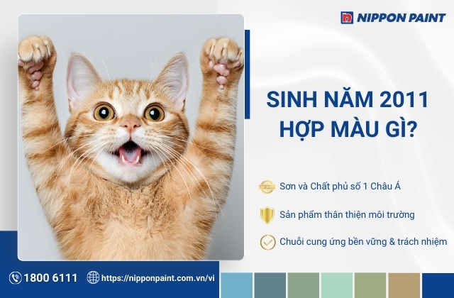 Để lựa chọn màu sơn nhà hợp phong thủy cho người sinh năm 2011, từ phòng ngủ, phòng học đến phòng tắm, gia chủ nên ưu tiên các dòng sơn chính hãng, bền màu và có bảng màu phong phú. Sơn Nippon Paint đáp ứng tốt những tiêu chí này, đồng thời hỗ trợ tư vấn chọn màu và giải pháp thi công phù hợp với từng không gian. Gia chủ sinh năm 2011 có thể liên hệ Nippon Paint qua Hotline 1800 6111 hoặc hệ thống đại lý trên toàn quốc để được tư vấn chi tiết và miễn phí.