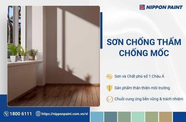 Để bảo vệ tường nhà khỏi ẩm mốc và nâng cao tuổi thọ công trình, việc lựa chọn sơn chống thấm chống mốc từ thương hiệu uy tín đóng vai trò quan trọng. Nippon Paint là một trong những thương hiệu sơn hàng đầu châu Á, ứng dụng công nghệ tiên tiến từ Nhật Bản mang đến các sản phẩm chất lượng cao, thân thiện với môi trường và an toàn cho sức khỏe người dùng. Với mạng lưới đại lý rộng khắp Việt Nam, khách hàng sẽ dễ dàng tiếp cận sản phẩm, nhận tư vấn kỹ thuật chuyên nghiệp và lựa chọn màu sắc hài hòa, phù hợp với từng kiến trúc ngôi nhà.