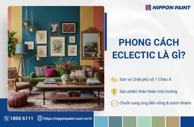 Hy vọng những chia sẻ trên đã giúp bạn hiểu rõ phong cách Chiết Trung Eclectic là gì, những đặc trưng cốt lõi và cách ứng dụng hiệu quả trong phối màu sơn nhà. Nếu bạn đang tìm giải pháp sơn phù hợp Eclectic, các dòng sơn Nippon Paint với bảng màu đa dạng sẽ là lựa chọn đáng tin cậy. Hãy liên hệ Nippon Paint hoặc hệ thống đại lý chính hãng để được tư vấn chi tiết và chọn ra bảng màu Eclectic phù hợp nhất cho không gian sống của bạn.