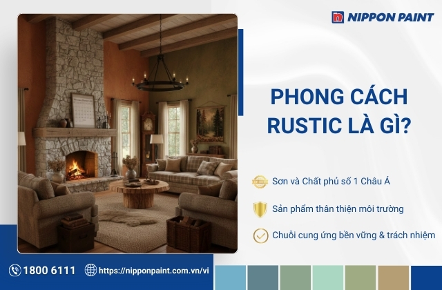 Để lựa chọn màu sơn phù hợp phong cách Rustic, bạn có thể đến trực tiếp các đại lý chính hãng của Sơn Nippon hoặc liên hệ hotline 1800 6111 để được tư vấn chi tiết theo từng không gian. Là thương hiệu sơn và chất phủ hàng đầu châu Á, Sơn Nippon nổi bật với công nghệ Nhật Bản tiên tiến, màu sắc bền đẹp, độ bền cao, khả năng chống nấm mốc và thân thiện với môi trường. Bên cạnh đó, thư viện hơn 2000 mã màu cùng xu hướng phối màu cập nhật liên tục giúp người dùng dễ dàng cá nhân hóa không gian sống theo phong cách mong muốn.