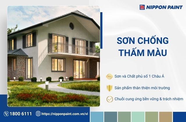 Lựa chọn sơn chống thấm màu phù hợp không chỉ bảo vệ công trình khỏi thấm nước, nứt nẻ và rêu mốc mà còn tạo điểm nhấn thẩm mỹ cho ngôi nhà với màu sắc đa dạng, đáp ứng phong cách riêng. Với các sản phẩm chất lượng, bền màu và an toàn, bạn có thể an tâm khi sử dụng các loại sơn tại Nippon Paint, đảm bảo về hiệu quả lâu dài và vẻ đẹp bền bỉ cho mọi công trình.
