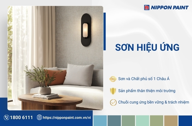 Sơn hiệu ứng là giải pháp trang trí giúp nâng tầm thẩm mỹ và bảo vệ bề mặt công trình hiệu quả. Các dòng sơn như sơn hiệu ứng rỉ sét, sơn hiệu ứng giả đá hay sơn hiệu ứng kim loại đều mang đến dấu ấn riêng cho từng không gian sống. Để đảm bảo chất lượng và hiệu quả thi công, hãy đến Đại lý sơn Nippon Paint trên toàn quốc hoặc liên hệ hotline 1800 6111 để được tư vấn và mua sơn hiệu ứng chính hãng.