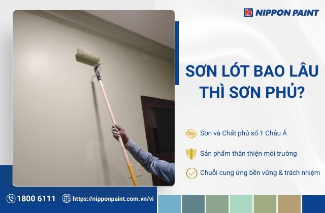 Sơn lót cần từ 2 đến 4 giờ để khô trước khi sơn phủ, tuy nhiên thời gian này còn phụ thuộc vào nhiệt độ, độ ẩm và loại bề mặt. Để thuận tiện và tiết kiệm thời gian, bạn có thể chọn sơn lót nhanh khô của Nippon Paint. Hãy ghé các đại lý Nippon Paint để chọn sản phẩm phù hợp và hoàn thiện công trình một cách nhanh chóng, bền đẹp.
