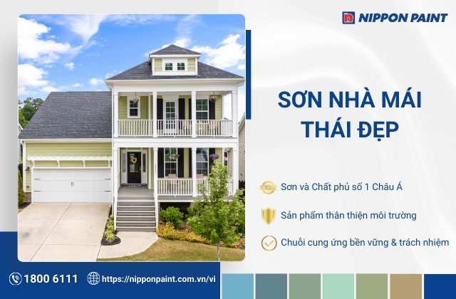 Kết hợp 20 mẫu sơn nhà mái Thái đẹp cùng nguyên tắc phối màu và gợi ý theo từng kiểu kiến trúc, bạn có thể dễ dàng lựa chọn phương án sơn phù hợp, giúp ngôi nhà vừa hài hòa tổng thể, vừa nổi bật và sang trọng. Để đảm bảo chất lượng và bền màu lâu dài, hãy mua sơn ngoại thất chính hãng tại Đại lý Nippon Paint, nơi cung cấp đầy đủ sản phẩm cao cấp, tư vấn chuyên sâu và dịch vụ giao hàng nhanh chóng.