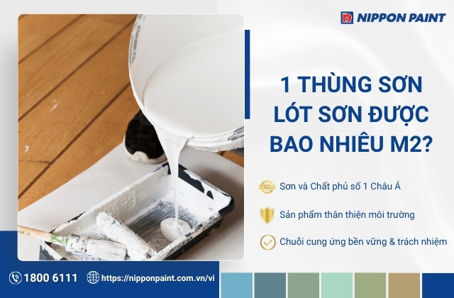 1 thùng sơn lót 18 lít phủ khoảng 130 - 180 m² cho 1 lớp (hoặc 65 - 90 m² cho 2 lớp), tùy loại sơn, bề mặt và cách thi công. Tuy vậy, nhiều người vẫn bối rối không biết nên mua bao nhiêu thùng sơn lót để đủ dùng mà không lãng phí. Hiện nay, Nippon Paint là thương hiệu sơn hàng đầu Nhật Bản, nổi bật với khả năng bao phủ tối ưu, giúp tiết kiệm chi phí và mang lại bề mặt sơn bền đẹp. Bài viết này sẽ giúp chủ nhà, thợ sơn và người yêu thích DIY hiểu rõ 1 thùng sơn lót sơn được bao nhiêu m², yếu tố ảnh hưởng đến độ phủ cùng cách tính toán chuẩn xác để lựa chọn số lượng sơn phù hợp.
