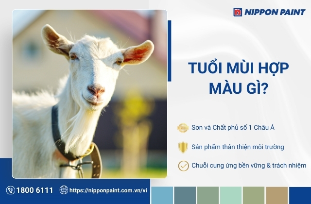 Tuổi Mùi hợp màu gì là vấn đề nhiều gia chủ quan tâm khi chọn sơn nhà theo phong thủy. Tùy theo bản mệnh ngũ hành của từng năm sinh 1943, 1955, 1967, 1979, 1991, 2003 và 2015, người tuổi Mùi sẽ hợp các màu khác nhau: mệnh Kim hợp trắng, xám, ghi; mệnh Mộc hợp xanh lá, xanh lục; mệnh Thủy hợp xanh dương, đen. Bài viết này giúp bạn xác định đúng mệnh, chọn màu sơn phù hợp, đồng thời tham khảo 30 mẫu màu sơn nhà hợp tuổi Mùi từ Nippon Paint để dễ dàng ứng dụng khi xây mới hoặc cải tạo nhà.
