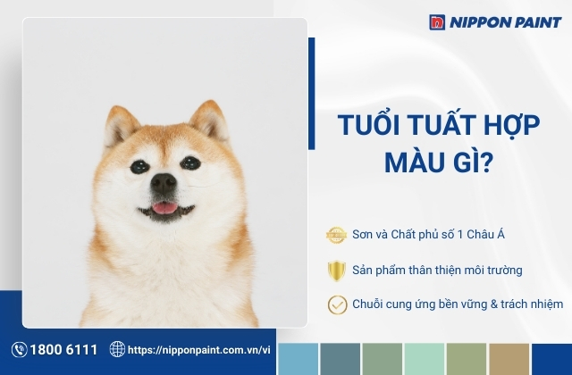Theo ngũ hành, tùy vào năm sinh tuổi Tuất như Mậu Tuất 1958, 2018 (mệnh Mộc), Canh Tuất 1970 (mệnh Kim), Nhâm Tuất 1982 (mệnh Thủy), Giáp Tuất 1994 (mệnh Hỏa) hay Bính Tuất 2006 (mệnh Thổ) sẽ phù hợp với những gam màu khác nhau, trong đó nổi bật là trắng, xám, xanh dương, xanh lá và vàng nâu. Trong bài viết này, Sơn Nippon (Nippon Paint) sẽ giúp bạn hiểu rõ đặc điểm tuổi Tuất và lựa chọn màu sơn hợp phong thủy, dễ ứng dụng, góp phần tạo nên không gian sống bền vững, thẩm mỹ và giàu sinh khí.