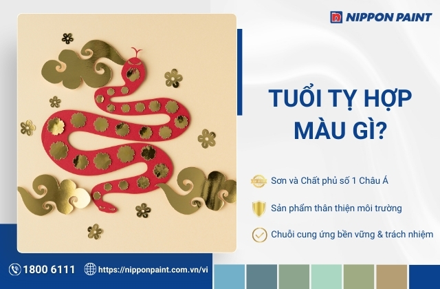 Tuổi Tỵ hợp màu gì là câu hỏi được nhiều gia chủ quan tâm khi lựa chọn màu sơn nhà theo phong thủy. Người tuổi Tỵ sinh vào các năm như 1953, 1965, 1977, 1989, 2001, 2013 và 2025 mỗi năm ứng với một bản mệnh khác nhau nên màu sắc phù hợp cũng có sự khác biệt. Cụ thể: Quý Tỵ (Thủy) hợp xanh dương, đen; Ất Tỵ (Hỏa) hợp đỏ cam, hồng, tím; Đinh Tỵ (Thổ) hợp vàng, nâu. Trong bài viết này, Sơn Nippon sẽ gợi ý top 30 mẫu màu sơn nhà hợp phong thủy tuổi Tỵ, giúp gia chủ dễ dàng chọn được tông màu đẹp, bền và phù hợp với không gian sống hiện đại.