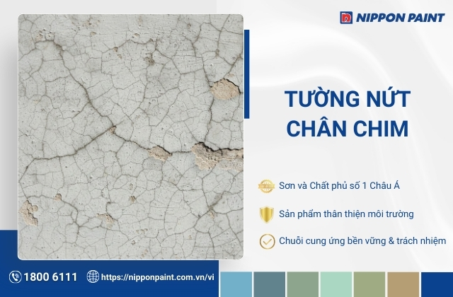 Tường nứt chân chim là hiện tượng xuất hiện các vết nứt nhỏ trên bề mặt tường, ảnh hưởng đến tính thẩm mỹ và có thể làm giảm độ bền của công trình nếu không được xử lý kịp thời. Trong bài viết dưới đây, Nippon Paint sẽ cùng bạn tìm hiểu rõ tường nứt chân chim là gì, nguyên nhân gây ra tình trạng này và những giải pháp xử lý hiệu quả, giúp bảo vệ bề mặt tường bền đẹp theo thời gian.