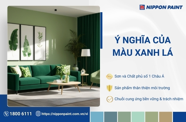 Bài viết trên đây đã tổng hợp đầy đủ ý nghĩa của màu xanh lá cùng những bí quyết phối màu tinh tế giúp nâng tầm đẳng cấp cho ngôi nhà. Lựa chọn sắc xanh phù hợp vừa mang lại vẻ đẹp thẩm mỹ vừa kiến tạo nguồn năng lượng tích cực và sự bình an cho cả gia đình. Bạn hãy liên hệ ngay Đại lý Nippon Paint qua hotline 1800 6111 để sở hữu những sản phẩm sơn chất lượng cùng ưu đãi hấp dẫn nhất.